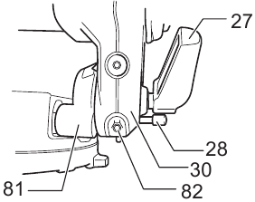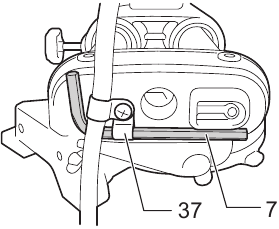 The position of laser line can be changed as the movable range of the adjusting screw for the laser is changed by turning two screws with a hex wrench. (The movable range of laser line is factory adjusted within 1 mm from the side surface of blade.)