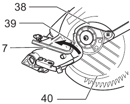 To avoid injury from flying debris, keep holding the saw head down, after making cuts, until the blade has come to a complete stop.