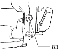 Adjust the 45° bevel angle only after performing 0° bevel angle adjustment. To adjust left 45° bevel angle, loosen the lever and tilt the blade to the left fully. Make sure that the pointer on the arm points to 45° on the bevel scale on the arm holder. If the pointer does not point to 45°, turn the 45° bevel angle adjusting bolt (upper bolt) on the right side of the arm until the pointer points to 45°.