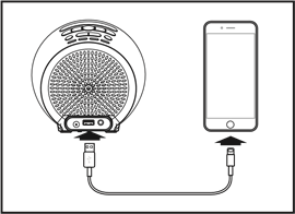 Spojite standardni kraj USB kabela (nije uključen) na USB Port (USB priključak) na stražnjoj strani jedinice, a drugi kraj spojite na priključak za punjenje na vašem uređaju.