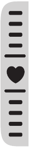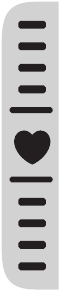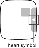 " svijetli plavo kada je vaš monitor u ispravnom položaju u odnosu na vaše srce tijekom mjerenja. Kada je vaš monitor u višem ili nižem položaju u odnosu na vaše srce, traka lokatora položaja srca pojavit će se iznad ili ispod simbola srca kako bi vas vodila do ispravnog položaja zapešća.