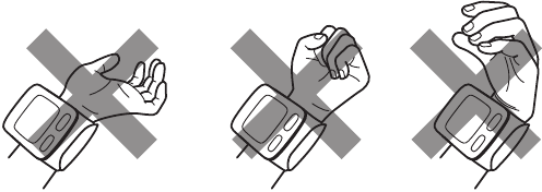 - Provjerite da ovaj mjerač ne ometa cirkulaciju krvi promatrajući zapešće tijekom mjerenja.