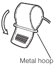 - Odrolajte manžetu i provucite kraj kroz metalni obruč tako da strana s kopčom na kukicu i petlju bude s vanjske strane.
