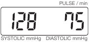 Približno 2 sekunde kasnije, vrijednosti krvnog tlaka i pulsa pojavljuju se naizmjenično na zaslonu.