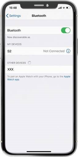 Otvorite funkciju "Bluetooth" na svom telefonu, potražite "S2" i kliknite ga za povezivanje. LED indikatori na slušalicama treperit će plavo jednom svake 3 sekunde, a čut ćete glasovnu poruku "connected" (povezano) iz slušalica što znači da je vaše Bluetooth uparivanje uspješno. (Dok se slušalice uparuju, LED indikator na jednoj slušalici treperi crveno i plavo naizmjenično, dok druga slušalica treperi plavo sporo, a iz slušalica se čuje glasovna poruka "pairing" (uparivanje), što znači da su slušalice spremne za povezivanje s mobilnim uređajem.)