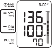 ![]() | Kretanje tijekom mjerenja i manžeta za ruku nije dovoljno napuhana. | Ponovite mjerenje. Ostanite mirni i ne razgovarajte tijekom mjerenja. Pogledajte odjeljak Uzimanje očitanja. |