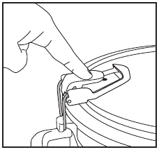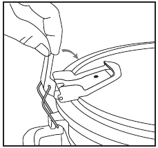 - Stavite poklopac na posudu od kamena. Zakačite žičanu kopču na kuku kopče (Slika 1).