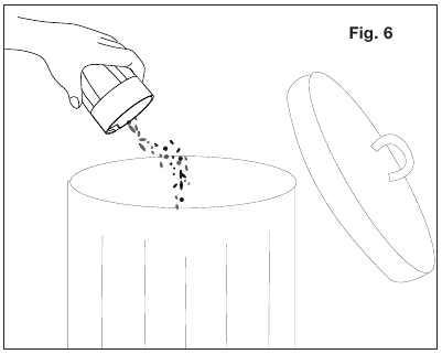 - Bacite ostatke i prašinu iz spremnika za prašinu u skladu s lokalnim zakonima i propisima (slika 5).