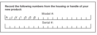 Prilikom kontaktiranja tvrtke, ponovnog naručivanja dijelova ili dogovaranja servisa od ovlaštenog distributera, morat ćete navesti model i serijske brojeve, koji se mogu pronaći na naljepnici koja se nalazi na kućištu jedinice. Kopirajte ove brojeve u prostor predviđen u nastavku.