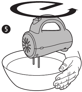 Nikada ne pokušavajte ukloniti ili zamijeniti metlice dok mikser za hranu radi ili je uključen u utičnicu. - Prilikom miješanja, vodite ručni mikser kroz središte i oko stranica zdjele za miješanje.