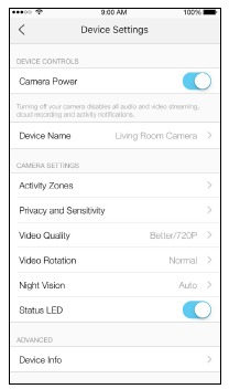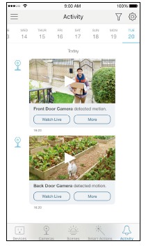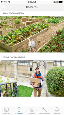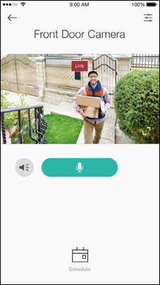 Dodirnite kameru na stranici Uređaji (Devices) ili Kamere (Cameras), a zatim možete pregledavati videozapis uživo, razgovarati s osobom u blizini kamere, uključiti sirenu kako biste otjerali uljeze i još mnogo toga.
