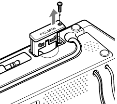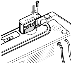 - Držite AC utikač spojen na AC utičnicu, uklonite vijak koji pričvršćuje odjeljak za baterije na dnu jedinice pomoću odvijača i povucite odjeljak za baterije označen s PULL OPEN (POVUCITE OTVORENO).