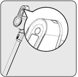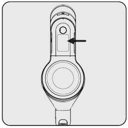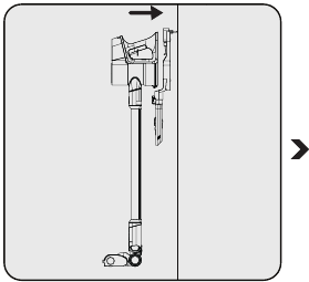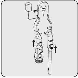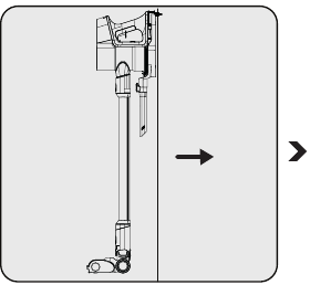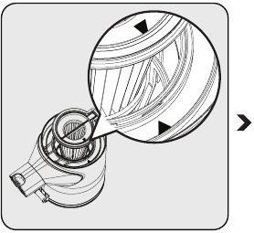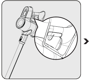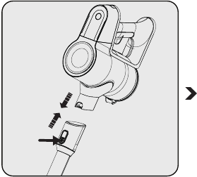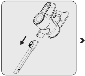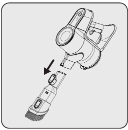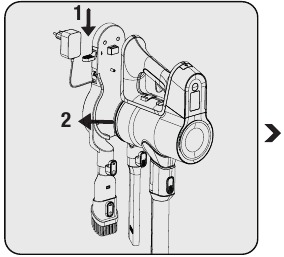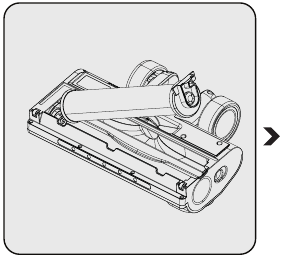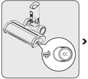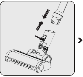 - Pritisnite gumb za otpuštanje električne turbo četke na električnoj turbo četki i gurnite je u smjeru strelice prema cijevi.