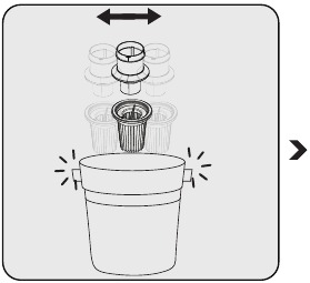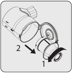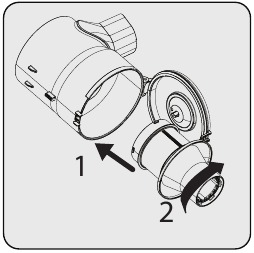 - Da biste umetnuli plastični filtar, prvo ga postavite (1), a zatim ga okrenite u smjeru kazaljke na satu da biste ga zaključali (2).