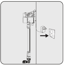 Nakon postavljanja spremnika za prašinu (5) na priključnu stanicu za punjenje (8), gurnite uređaj prema priključnoj stanici.