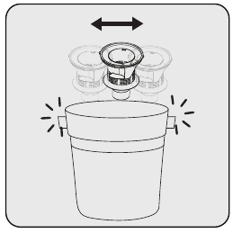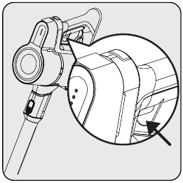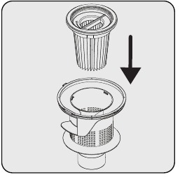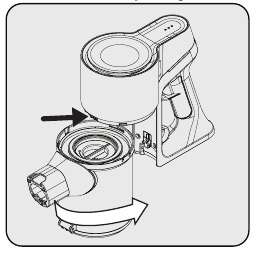 Pričvrstite konektor spremnika za prašinu na rupe na tijelu, a zatim učvrstite spremnik za prašinu okretanjem u smjeru suprotnom od kazaljke na satu dok ne čujete zvuk klika.