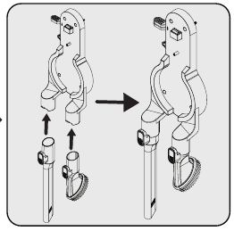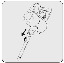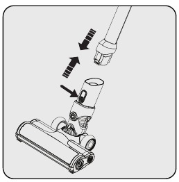 Pritisnite gumb za otpuštanje električne turbo četke (11) na električnoj turbo četki (12) i gurnite je u smjeru strelice prema cijevi.