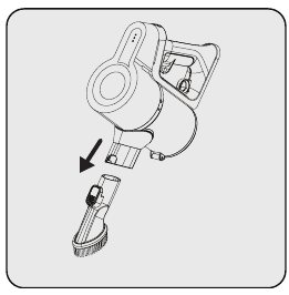 Pričvrstite nastavak za uske prostore (16) i četku za prašinu (15) na priključnu stanicu za punjenje (8).