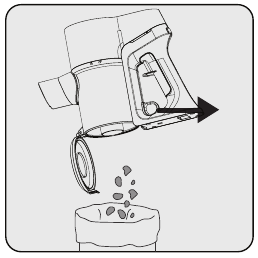 Povucite prsten za pražnjenje spremnika za prašinu (4) do zadnje točke. Poklopac spremnika za prašinu će se otvoriti. Ispraznite svu prašinu koju sadrži.