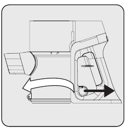 Gurnite cijev (10) u smjeru strelice prema tijelu pritiskom na gumb za otpuštanje cijevi (6).