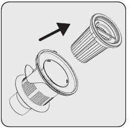Pričvrstite plastični filter na prsten spremnika za prašinu (5).