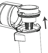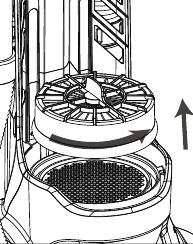 - Držite i okrenite separator u smjeru kazaljke na satu za njegove ručke i izvadite ga iz spremnika za prašinu.