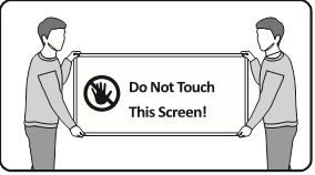 Zaslon se može oštetiti izravnim pritiskom ako se njime nepravilno rukuje. Kao što je prikazano na slici, prilikom podizanja televizora obavezno uhvatite rubove zaslona. Za više informacija o rukovanju pogledajte Vodič za brzo postavljanje koji ste dobili s ovim proizvodom.