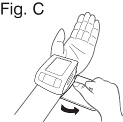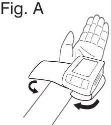 - Postavite manžetu na lijevo zapešće s dlanom okrenutim prema gore kao što je prikazano na slici A.