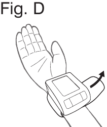 - Ako vam je liječnik dijagnosticirao lošu cirkulaciju u lijevoj ruci, stavite manžetu oko desnog zapešća kao što je prikazano na slici D.