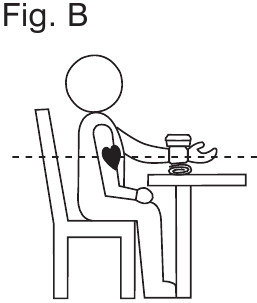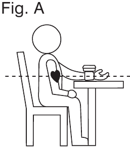 - Stavite lakat na stol tako da manžeta bude u istoj razini kao i vaše srce kao što je prikazano na slici A.