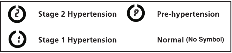 Na temelju vaših rezultata mjerenja, indikator kategorije rizika monitora upozorit će vas ako vaše očitanje spada u kategorije predhipertenzije, hipertenzije 1. stupnja ili hipertenzije 2. stupnja.