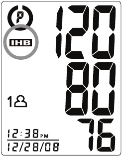 Ovaj monitor također ima detektor nepravilnog rada srca (IHB) koji će upozoriti korisnika na prisutnost nepravilnog rada srca. Preporuča se da se posavjetujete sa svojim liječnikom ako se IHB simbol