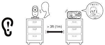 - Drugi elektronički proizvodi mogu uzrokovati smetnje s vašim monitorom za bebe. Pokušajte instalirati svoj monitor za bebe što je dalje moguće od ovih elektroničkih uređaja: bežični usmjerivači, radio uređaji, mobilni telefoni, interkomi, sobni monitori, televizori, osobna računala, kuhinjski uređaji i bežični telefoni.