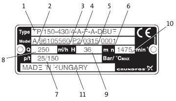 Sl. 1 Natpisna pločica za TP pumpu s ∅150 ispusnim prirubnicom