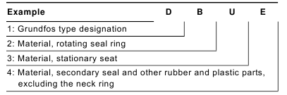 Pozicije 1 do 4 pokrivaju četiri informacije o mehaničkoj brtvi:
