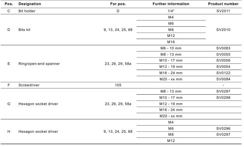 | I | Moment ključ | G, H | 4-20 Nm | SV0292 |
