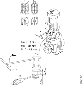 Ako se isporuka sastoji od kompletne jedinice (motor pričvršćen na kraj crpke), položaj spojke koja povezuje osovinu crpke s osovinom motora postavljen je prema tvorničkim specifikacijama. Nije potrebno podešavanje.