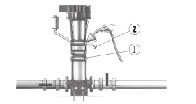 Poz. Opis 1 Otvoreno 2 Zatvoreno - Uklonite čep za punjenje iz komore sa zračnim hlađenjem (poz. 2) i polako napunite komoru tekućinom. Kada je komora potpuno napunjena tekućinom, vratite čep za punjenje i dobro ga zategnite.