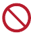 ![]() | Crveni ili sivi krug s dijagonalnom trakom, moguće s crnim grafičkim simbolom, označava da se neka radnja ne smije poduzeti ili se mora zaustaviti. |