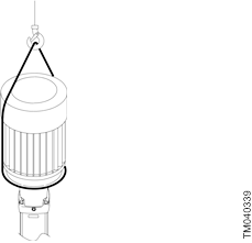 Podignite sklop crpke remenima za podizanje koji prolaze kroz postolje motora. Pazite da se opterećenje ne primjenjuje na osovinu crpke.