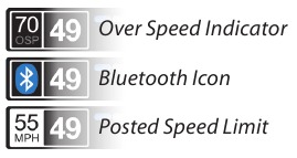 Sebességtúllépés riasztási beállítás, amely a Preferences (Beállítások) menüben állítható be. A Bluetooth ikont jeleníti meg, amikor a telefonhoz van párosítva, és a közzétett sebességkorlátozást az aktuális helyhez, amikor csatlakozik az ESCORT Live-hoz