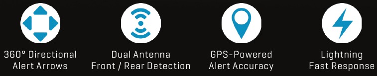 Az ESCORT MAX 360 többszínű OLED kijelzővel rendelkezik. A ragyogó grafikák intuitív ikonokat világítanak meg, amelyek egy pillantással azonosítják a fenyegetés típusát.