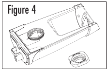 - Fordítsa a tartályt fejjel lefelé, és csavarja le a tartály kupakját az óramutató járásával ellentétes irányba forgatva. Töltse fel a tartályt hűvös, friss csapvízzel. NE töltse fel meleg vízzel, mert ez szivárgást okozhat. (Lásd a 4. ábrát)