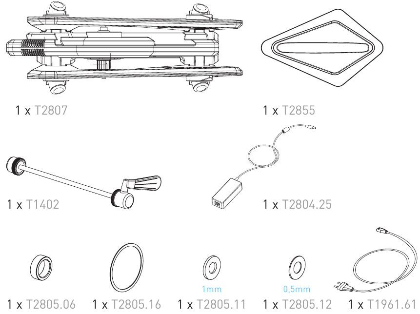 - Csúsztassa a 2 mellékelt távtartót (T2805.11 és T2805.12) a tengely hátuljára.