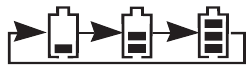 A képernyőn a Low battery ("Alacsony töltöttség") felirat jelenik meg, és a villog. | Az akkumulátor elegendő töltéssel rendelkezik a rövid ideig tartó használathoz. | Töltse megszakítás nélkül (kb. 30 percig). |