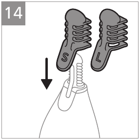 - Győződjön meg arról, hogy a termék ki van kapcsolva. Csúsztassa a szemöldökfésűt a vágóelemre (14. ábra). A rövid szemöldökfésű 3 mm-es hosszúságúra vágja a szőrszálakat. A hosszú szemöldökfésű 5 mm-es hosszúságúra vágja a szőrszálakat.