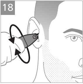 - Óvatosan helyezze be a vágóelemet a külső hallójáratba. Mozgassa a hegyet a külső hallójáratba be és ki határozott, forgó mozdulatokkal, hogy a szőrszálakat rövidebbre vágja (18. ábra).