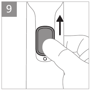 - A termék bekapcsolásához csúsztassa felfelé a be-/kikapcsoló csúszkát. (9. ábra)