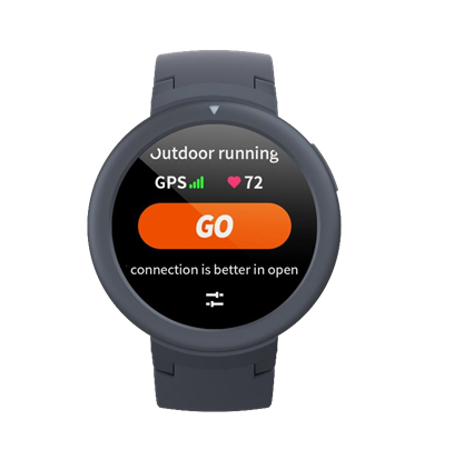 A GPS pozicionálás sikeres feldolgozása után a "GO" ikon világít, és rákattinthat az edzés elindításához.