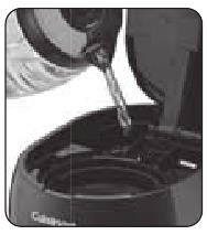 MEGJEGYZÉS: A kávéfőző vízkőtelenítése előtt ne felejtse el eltávolítani a szénvízszűrőt a víztartályban található vízszűrő tartóból.